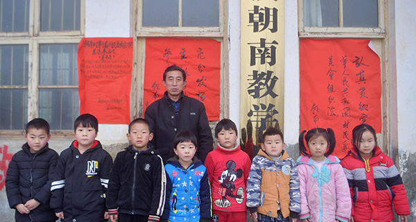 2018年12月4日,湖北恩施,周文田老师和太坪龙教学点孩子合影。
