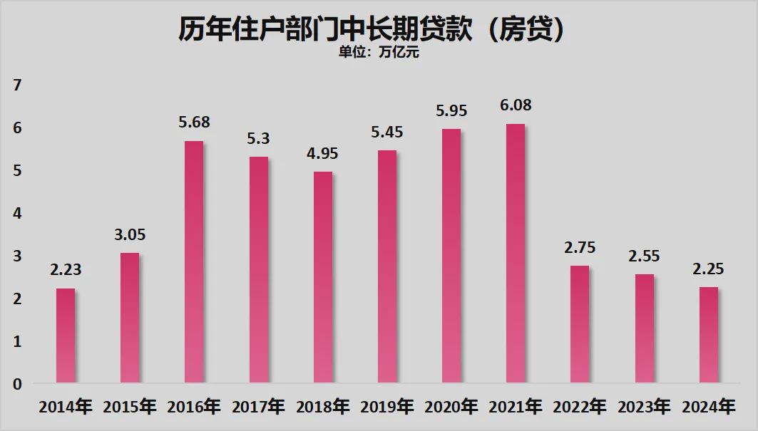 央行公布的去年全年住户部门中长期贷款增量,增加了2.25万亿,这一增量规模较去年减少了3000亿元,继续创下新低。