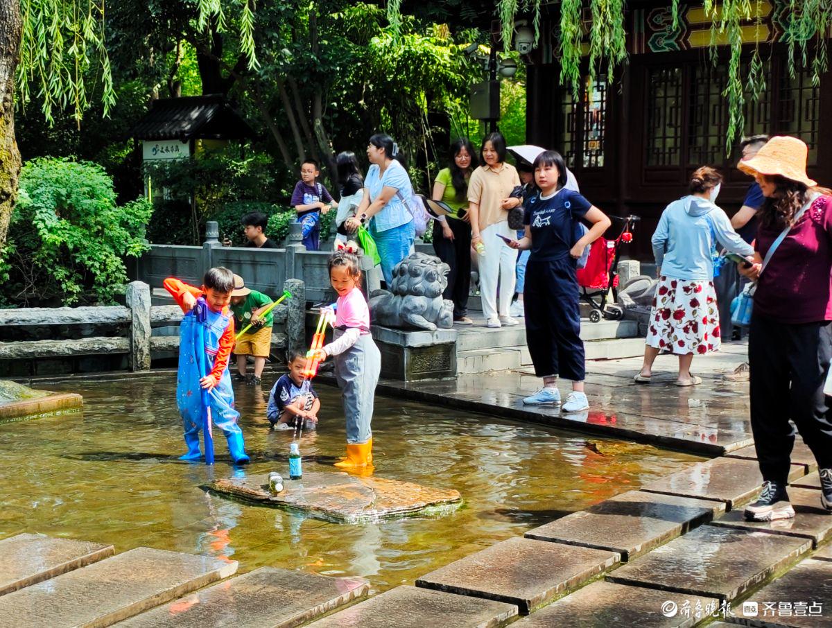 趵突泉亲水区域,小儿清凉一夏