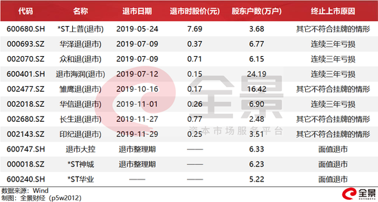 截至目前,2019年已经有*ST上普、众合退、华泽退、退市海润、雏鹰退、长生退、印纪退等8家公司终止上市,另外还有退市大控、神城A等公司正处于退市整理期,即将告别A股。总体而言,上述上市公司涉及股东户数合计高达87.88万户。