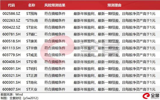 从Wind风险预测数据来看,的确有一些ST股有望摘帽或摘星。