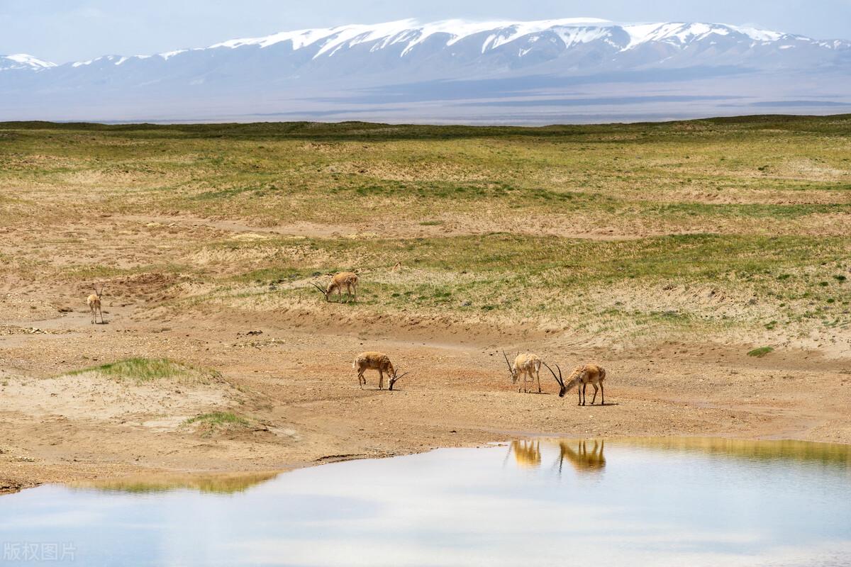 辽阔的大地向远方伸延,无边无际的荒原,随处可见的藏野驴和野牦牛。这里海拔4600米以上,干旱寒冷、空气稀薄、生态脆弱,是人类“生命的禁区”。 路边时不时的出现藏羚羊,三五成群,并不怕人,不能打扰,只能远观。