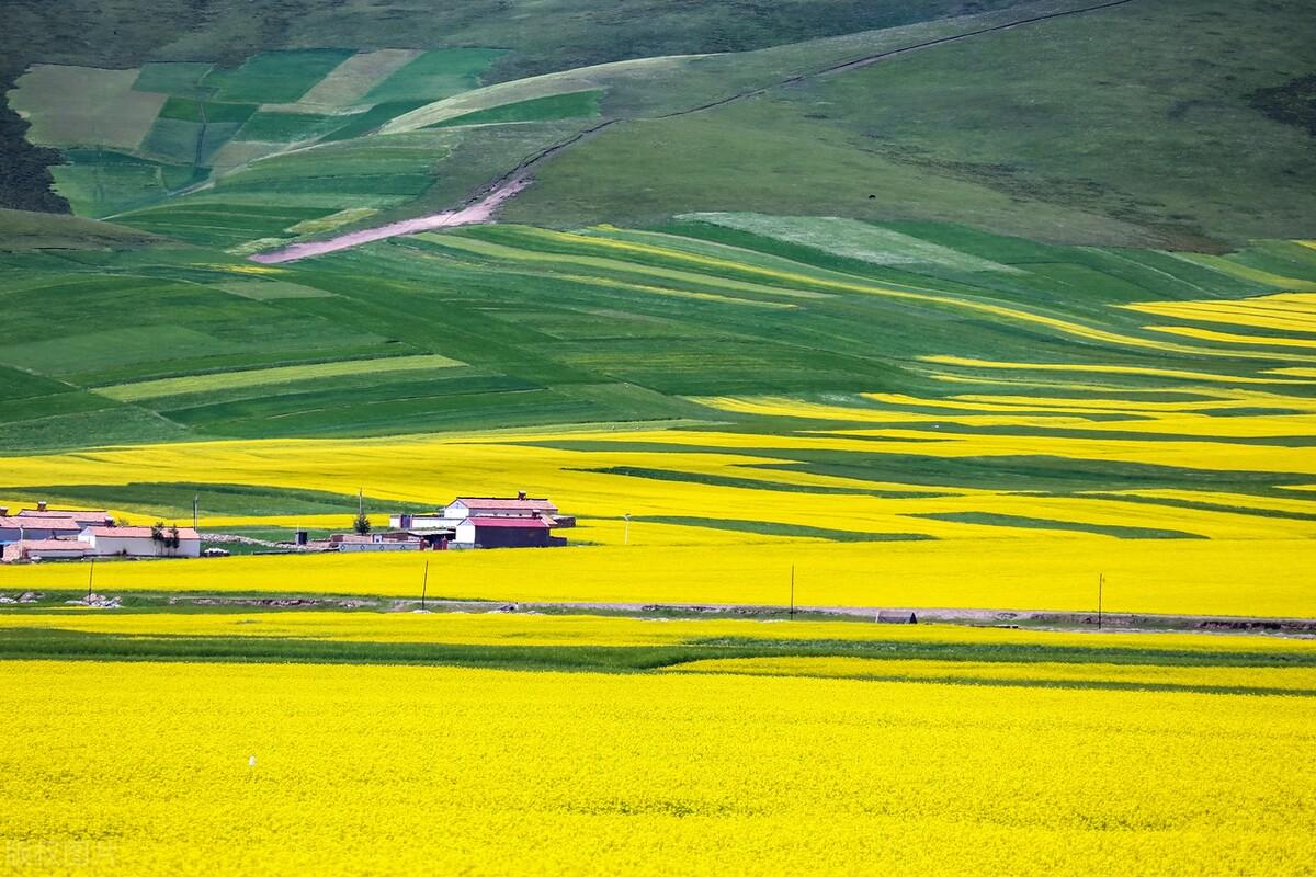 门源是北方最大的小油菜种植地,种植面积可以和云南罗平匹敌,绵延数十公里。这里的油菜花花期不是在春季,而是在夏季。开车行驶在门源的油菜田,整个油菜花田犹如金黄色的大海一眼望不到头,在高原的蓝天白云和雪山的映衬下,有一种铺天盖地的大西北气概。