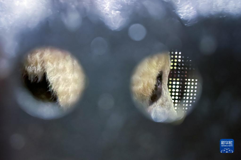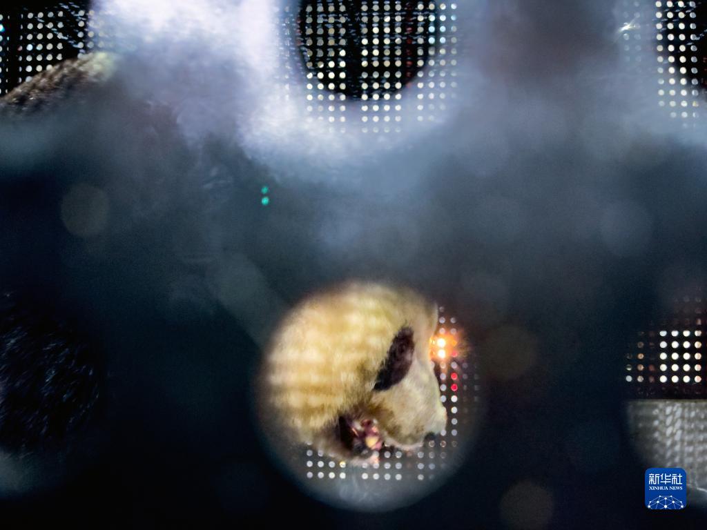 2月21日,大熊猫"香香"抵达成都双流国际机场海关查验区,中国大熊猫保护研究中心的兽医在检查其状态。