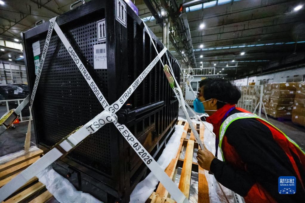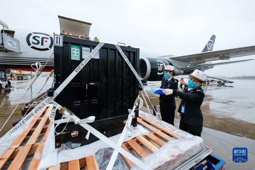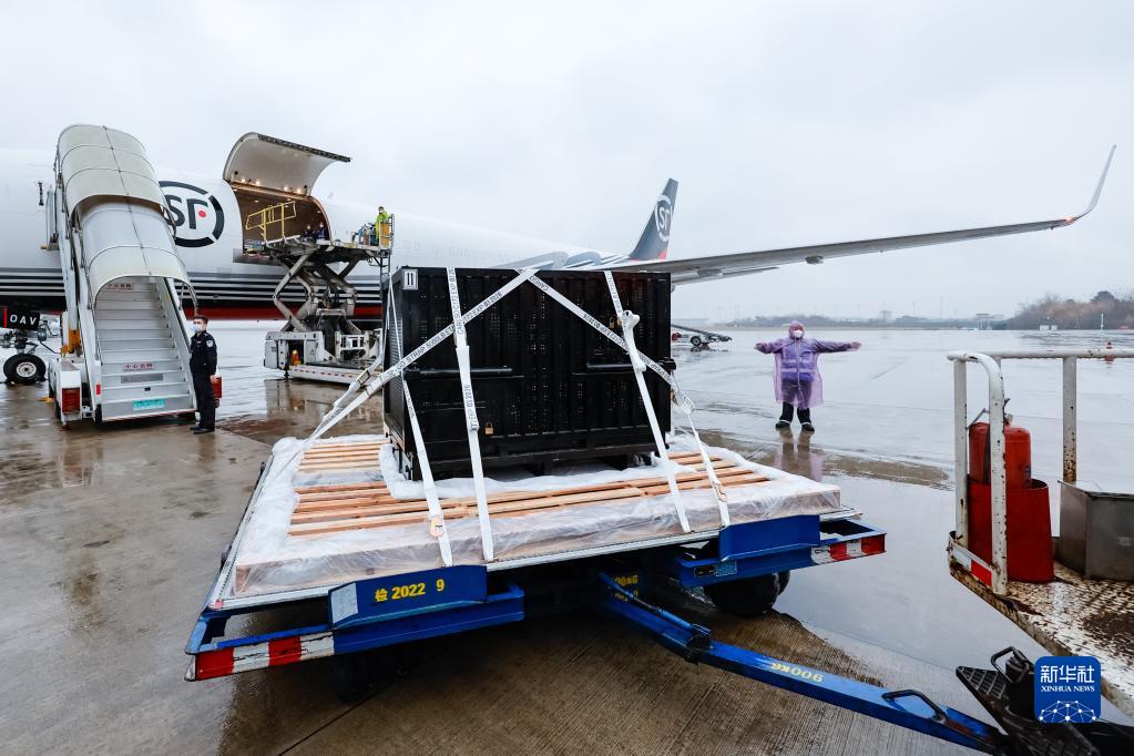 2月21日,大熊猫"香香"搭乘顺丰航空货运包机抵达成都双流国际机场。
